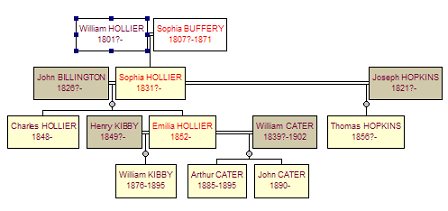 This still left the problem of why I could not find a family comprising a father William, daughter Sophia and possibly grandson Charles in the fully indexed 1851 census - not the Ancestry one (which hadn't then been released) but the 'Tri-County' index of Warwickshire, Norfolk and Devon on CD-ROM that the Mormons had published some years back as a trial before they did the 1881 census index. I had searched all possible variants for Hollier but drawn a blank. At this stage, I decided to check all the Birmingham Hollier families I had found in the 1851 census against my master database to see if any families might be missing. This proved to be a good move, as the only missing family was that of William Hollier and his wife Sophia (née Buffery), who I knew had married in 1820 and had children spread over some 20 years. But there were many gaps as the family had been 'constructed' partly from IGI baptism entries and partly from a couple of birth certificates I had bought in an attempt to identify the many Birmingham Hollier families. I knew therefore that they had 4 children: Thomas, baptised 1821; Emma, baptised 1823; William born 1838 and Charles born 1841. It would be quite possible for William & Sophia to be the parents of Sophia born c.1831.