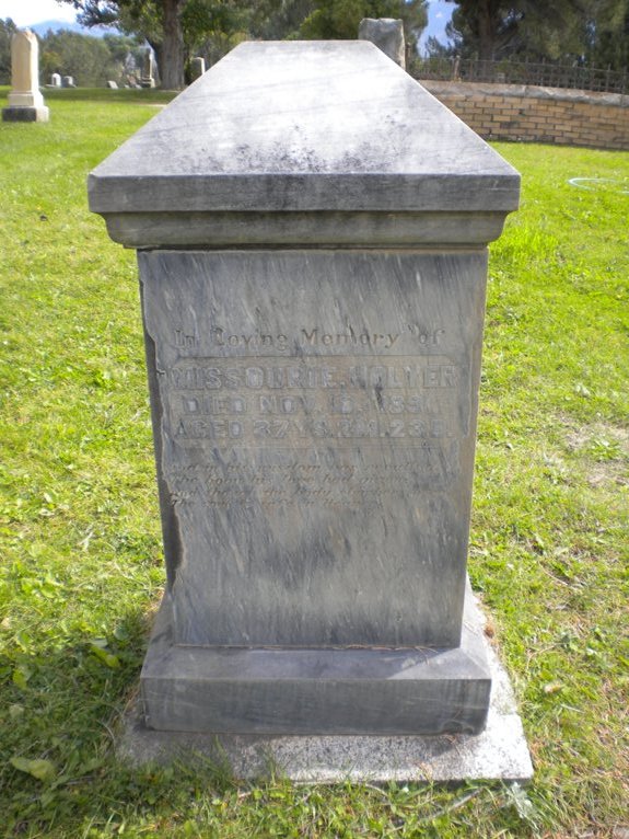 All that is known is that on 10th November 1891, Missouri died of Typhoid and was buried in Fairview Cemetery. Of her it was said “Passed away at her home in Salida. Her disease Typhoid fever, she was confined to her bed six long weary weeks and suffered greatly, was patient and uncomplaining, and was ready for the summons. A devoted wife, loving sister and sincere friend.”